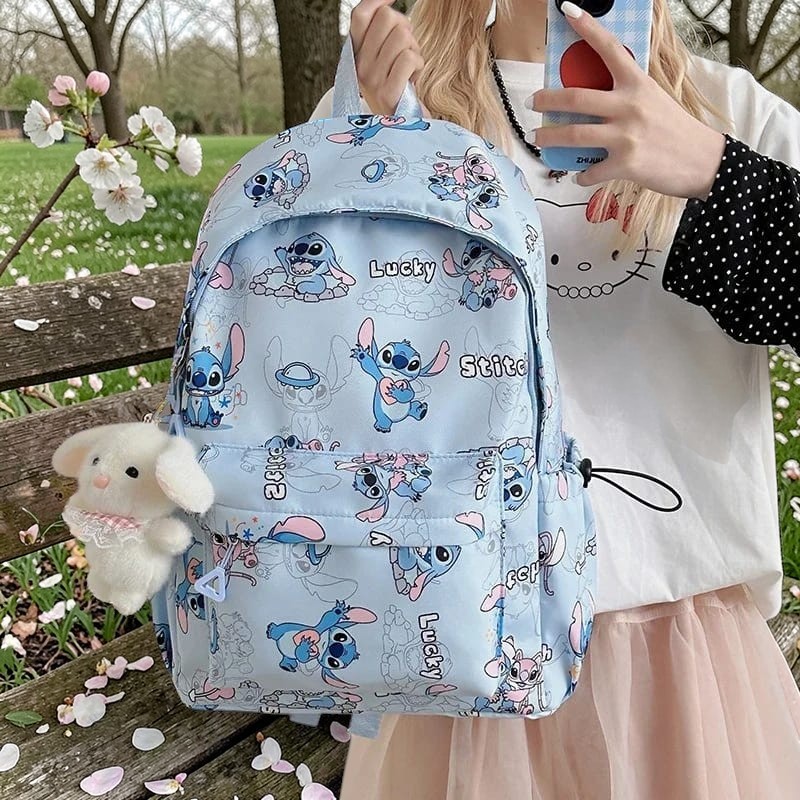 Lleva contigo a uno de los personajes más adorables de Lilo & Stitch con esta hermosa mochila Stitch kawaii . Su diseño lleno de ilustraciones del querido extraterrestre azul le da un estilo divertido y único, perfecto para los fans de Disney.